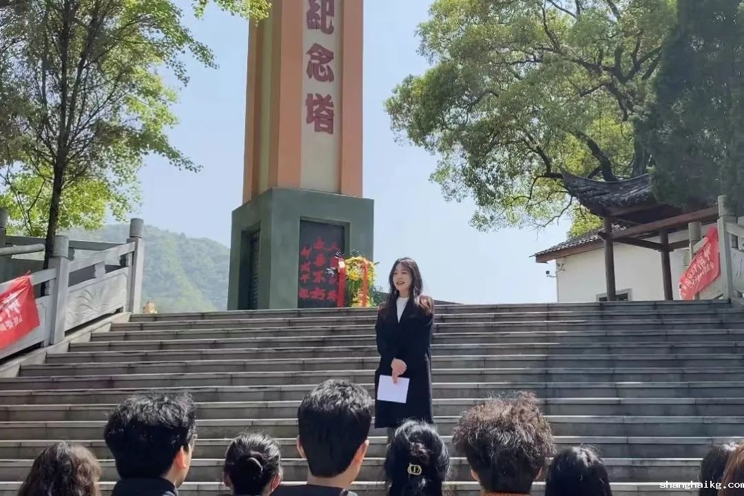 在革命烈士纪念塔下,星空手机版安全党的二十大宣讲团成员赵雯倩、沈丽莉分别向我们分享荷塘革命先烈胡青莲和王桂莲的英雄故事。讲述革命先烈的顽强意志和艰苦奋斗的革命精神。