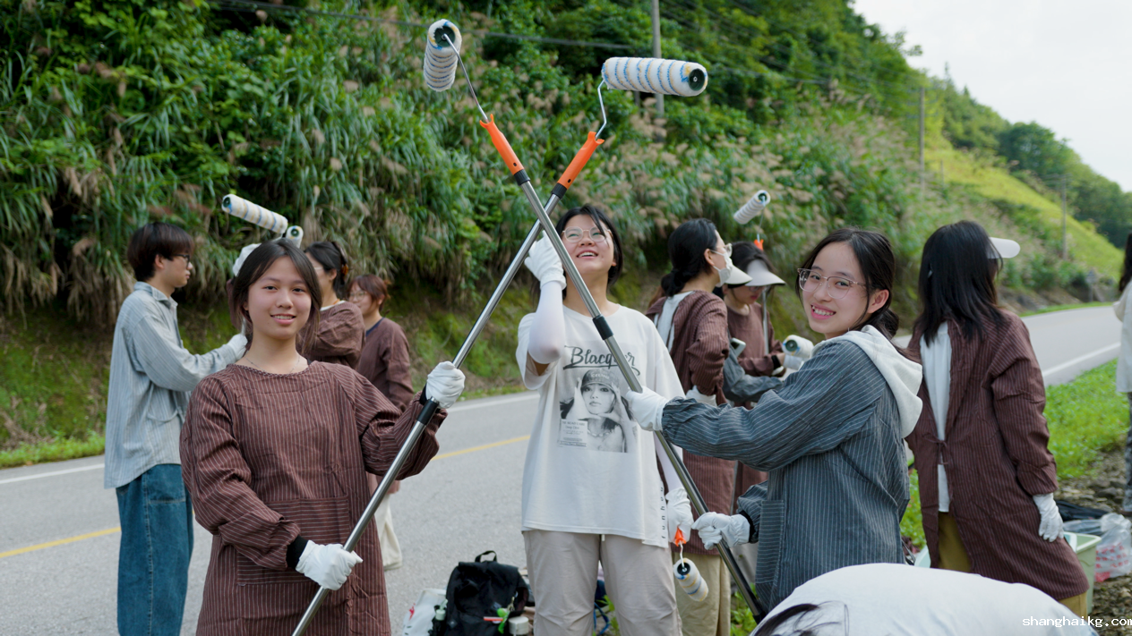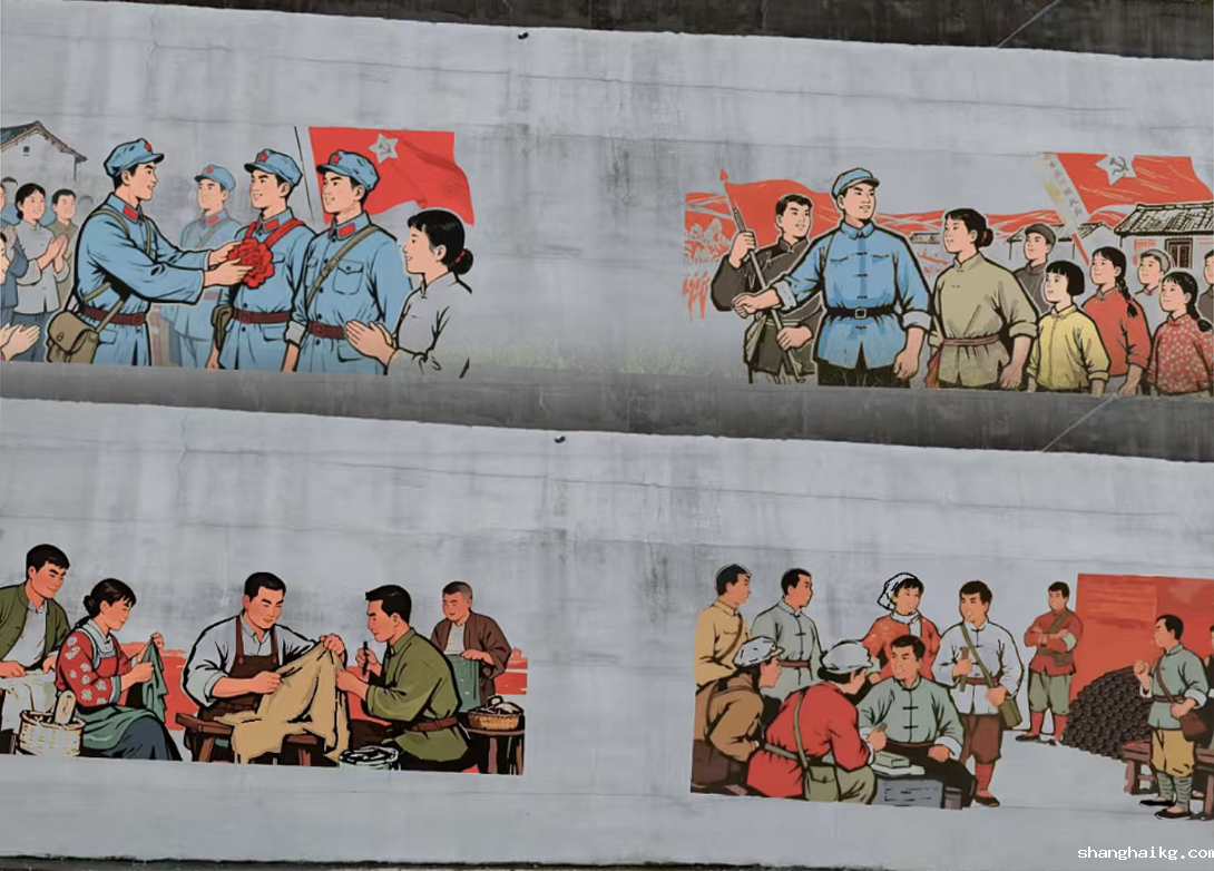 绘制过程中,盛夏的烈日炙烤着大地,地表温度节节攀升,队员们大汗淋漓,顺着脸颊滑落,浸湿了衣衫却丝毫没有动摇大家的决心。大家默契地分工协作:有的清理杂草、刷净墙面,让每一笔都更有抓力;有的俯身勾勒精准的轮廓,让历史场景在墙面上渐显雏形。我们站在墙前静静凝望,愈发深刻地体会到:艺术从来不止于装点,它能为乡村环境添上浓墨重彩的一笔,让寻常巷陌焕发文化生机;更能如春雨般浸润人心,在观者心中播撒下红色种子,涵养出醇厚绵长的文化气息。让红色故事在乡村的墙面上永远“活”下去,让革命精神在青春的传承中永远“传”下去。
