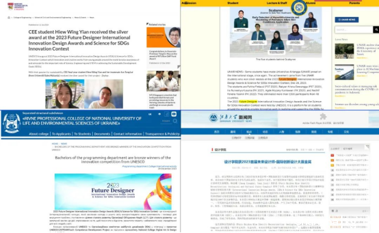 获奖选手所在学校纷纷给予报道,如江南大学、南京艺术学院、新加坡南洋理工大学、印尼艾尔朗加大学等等。