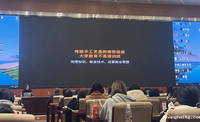 讲座开始,李超德教授以新冠疫情、俄乌战争、元宇宙这三件近期颇受关注的事情为例,来探讨传统元素如何完成现代设计转换。顺着这个思路,李教授引出了一个比较理性的话题:设计的自由创造与科学理性。李教授认为传统手工艺是师傅带徒弟,而大学教育不是培训班,在传授知识、教会技术的同时还要做到教会思想。