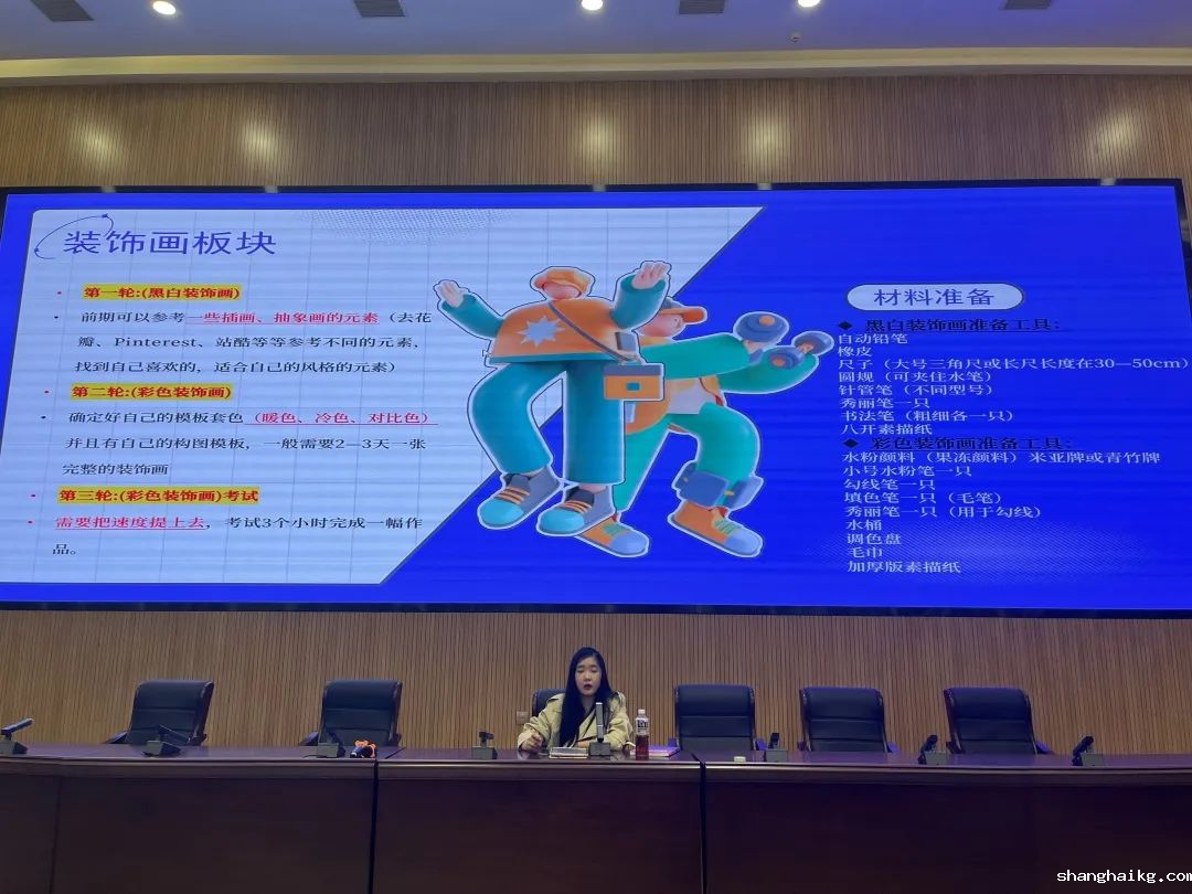 接着,罗颖洁也介绍了我们备考的时间流水线,她分享了一些学习英语的app和书目、强调了平时多加练习对于装饰画的重要性;在面试之中,我们要大量阅读书籍扩充自己的知识储备,并且制作读书笔记强化知识的吸收。关于英语考试,可以参考四六级的难度,对于基础薄弱的,可以采用每天背单词,熟背十篇作文这种日积月累的方式提升自己。