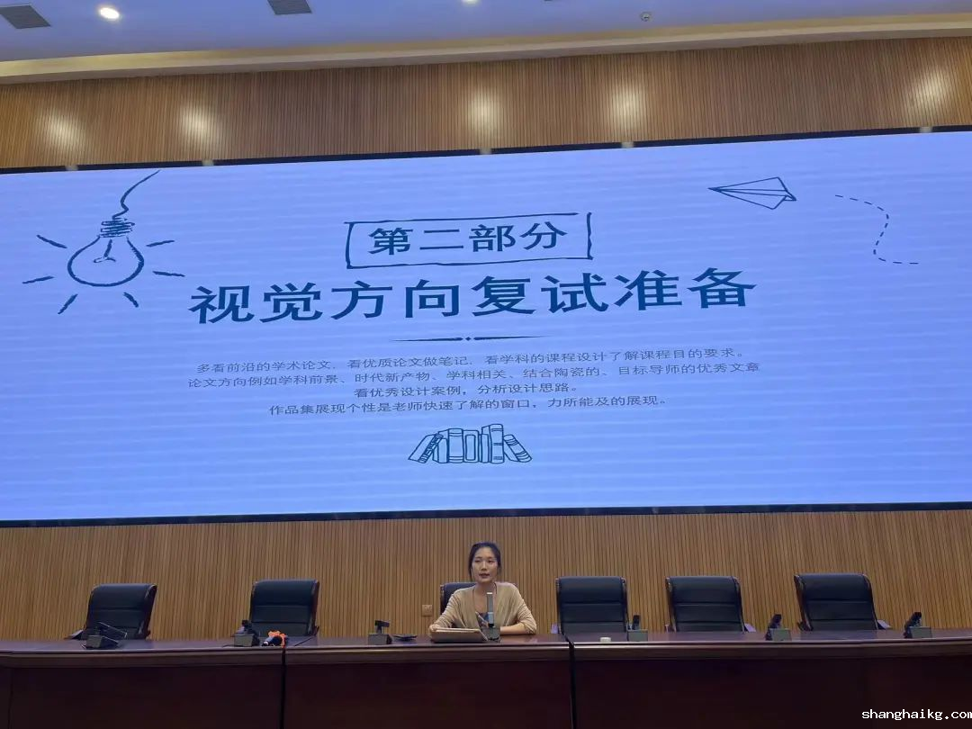 魏婷婷分享了自己的初试心得:利用真题,摸索出题人的思路;梳理史论框架,考前多默写练手速;手绘去模板化,多练多画不被局限。魏婷婷谈到了复试的准备,她建议同学们可以多看前沿的学术论文,多了解现在的写作趋势,如AI等等。平时也要多看设计案例提高自己的眼界,在面试时就有足够的例子来支撑自己所说的观点。