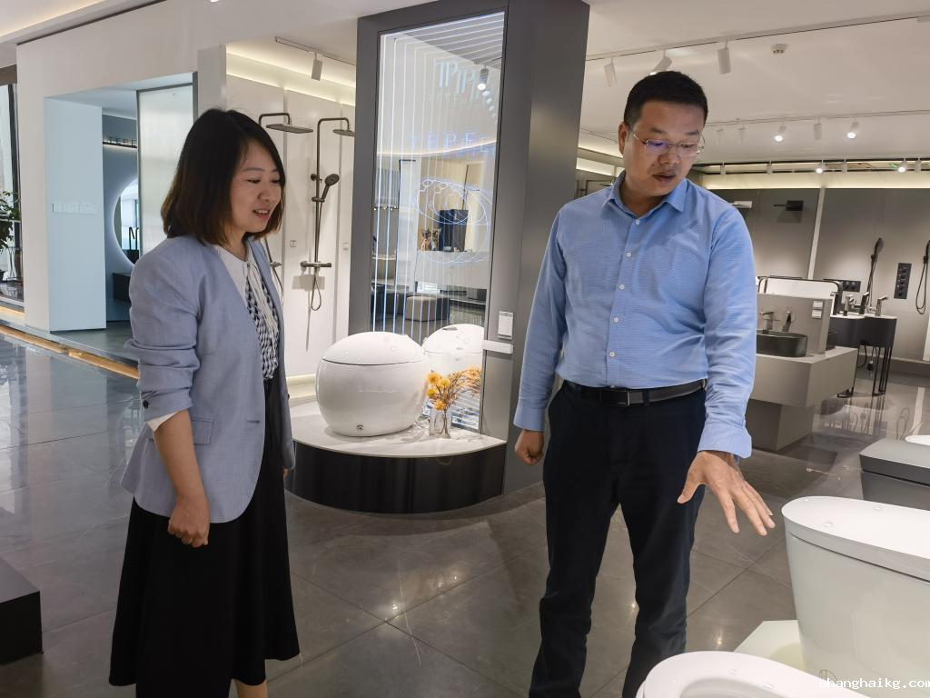 随后,佛山市一二三科技有限公司副总裁兼缇派卫浴总经理温尊华先生接待并带领一行人员参观了企业产品展厅。