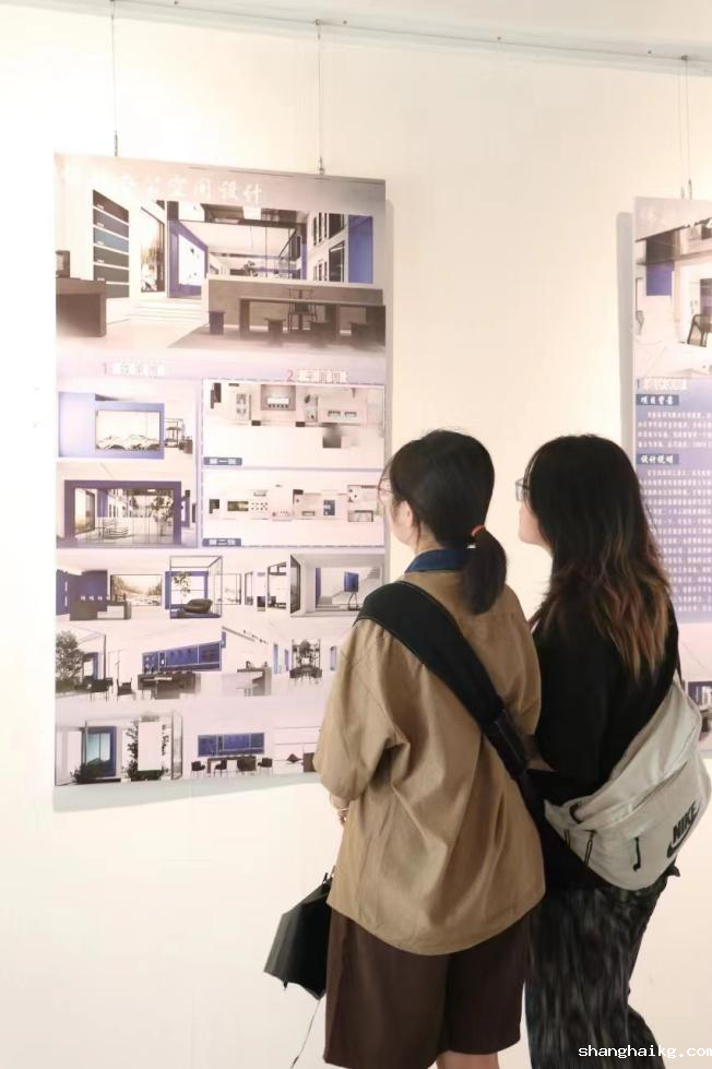 走进张一帆个人作品展,作品整齐的排列在展厅的墙壁上。此次展览作品的种类非常多样化,作品内容包括展板八张、家具十件、手绘35张。范围涵盖了办公空间设计、酒店设计、公园设计等领域,体现了张一帆老师在多个领域的设计才能和广泛的创作能力。此外,还包括多副手绘作品供师生学习欣赏。