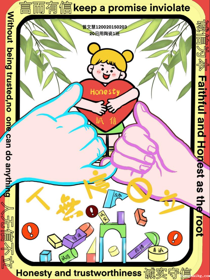 本次诚信作品征集活动中,同学们用自己的作品宣传诚信观念,也在活动中品箴言、会真意,感悟经典,树立诚信意识。希望同学们能够以此为契机,从自身做起,做一个诚实守信、有担当有责任的人,在新时代展现出陶大设院青年的风采!