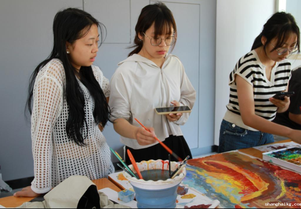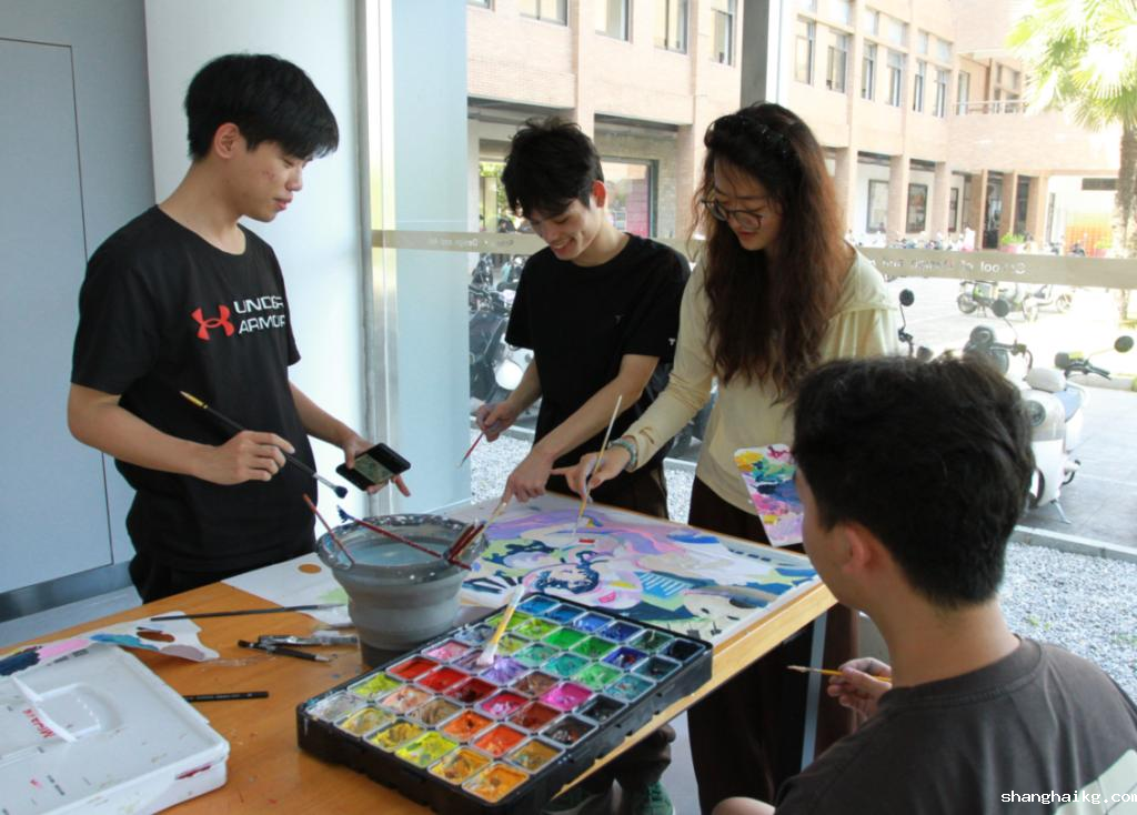 活动现场,同学们以小组为单位共同完成同一幅作品,大家分工明确,手持画笔或坐或站,专注描绘心中图景。同学们纷纷表示,希望通过对未来的构想,表达对祖国繁荣的期待,也希望传递青年一代的责任担当。
