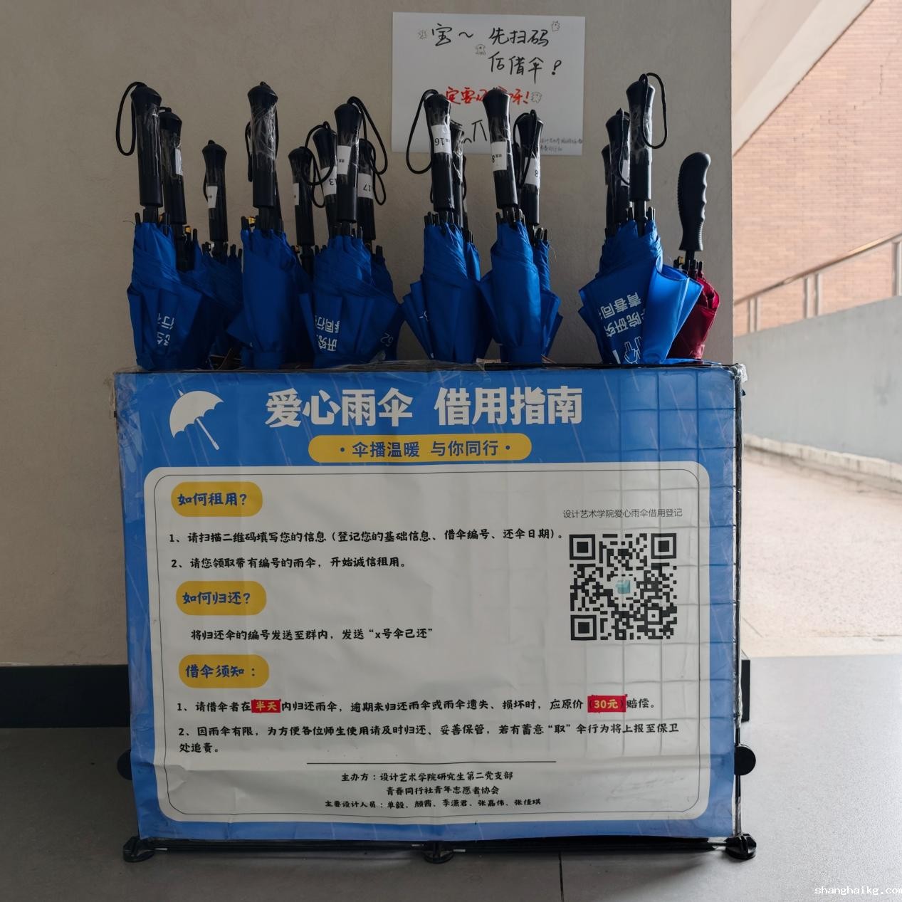 珍惜爱护:每一把爱心雨伞都凝聚着设院师生的关爱与付出。请在使用过程中悉心爱护,避免雨伞损坏或遗失。